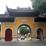 Entrance: The entire complex is guarded by a large entrance gate with three doors. This gate leads into a long corridor where walls on both sides are lined with stelae (stone tablets) where poems from various Chinese poets are inscribed. At the end of the corridor lies the famous Maple Bridge which diagonally faces the wall marking the entrance into the temple.