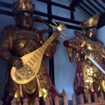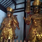 Front Hall of four heavenly kings: As is typical of East-Asian Buddhist temples, you enter through the hall of Four Heavenly Kings or Devas (gods), the Guardians of the Four Directions. At the front of this hall, there was the joyful future Buddha, Maitreya Buddha, known to the Chinese as the “Laughing Buddha” with his fat paunch. Directly behind the Laughing Buddha, separated by a wall, was the statue of the great warrior Deva (god) Wei-to, the Protector of Buddhist temples, faith, books and (according to my guide) hungry people. Clad in full armor and holding a scepter-shaped weapon resting on the ground, he is considered to be a general under the command of the Four Heavenly Kings. He is always supposed to face the Great (Mahavira) Hall, which was separated from the front hall by a courtyard.