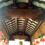 Pagoda:  A pagoda is a tiered tower with multiple eaves and is found in many Asian temples. In Sanskrit, the word “pagoda” (or stupa) meant a “tomb.”  Pagodas were originally built for the purpose of preserving the remains of Sakyamuni, the founder of Buddhism.  Eventually, the pagodas also starting serving as shrines or monuments.  At Han Shan temple, out of the pagoda’s total of five tiers (floors), only two were open to the public. The roofs were supported by dougongs (Chinese brackets). The top of the pagoda was marked by a metallic finial.