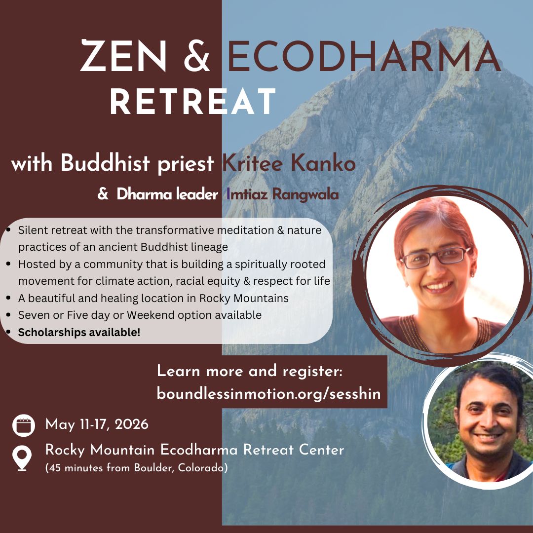 Boundless in Motion is a 501(c)3 non-profit and a trauma-informed meditation community based in Boulder (Colorado). We are building a spiritually rooted movement towards climate action, racial equity and respect for all life on our planet. We host retreats that are at the interface of inner healing (through meditation and grief/rage sharing circles) and outer strategic actions for climate and social justice. This silent retreat is for those who want to learn about Zen tradition and deepen their surrender to the “Enlightened Mind”.
